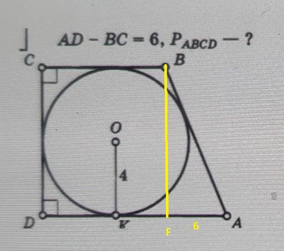 В трапецию можно вписать окружность, если сумма оснований трапеции равна сумме её боковых сторон.