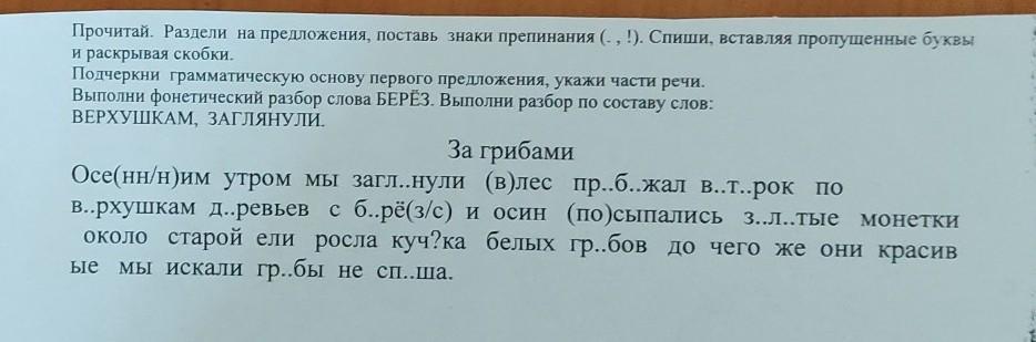 Прочитай. Раздели на предложения, поставь знаки препинания (.. !). Спиши, вставляя пропущенные буквы