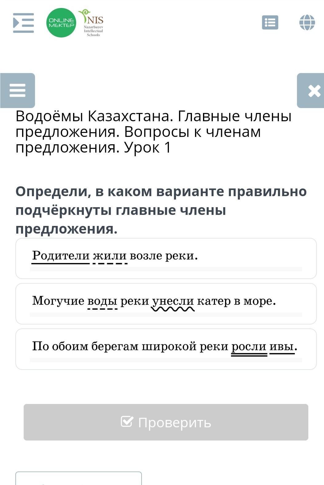 Водоёмы Казахстана. Главные члены предложения. Вопросы к членам предложения. Урок 1