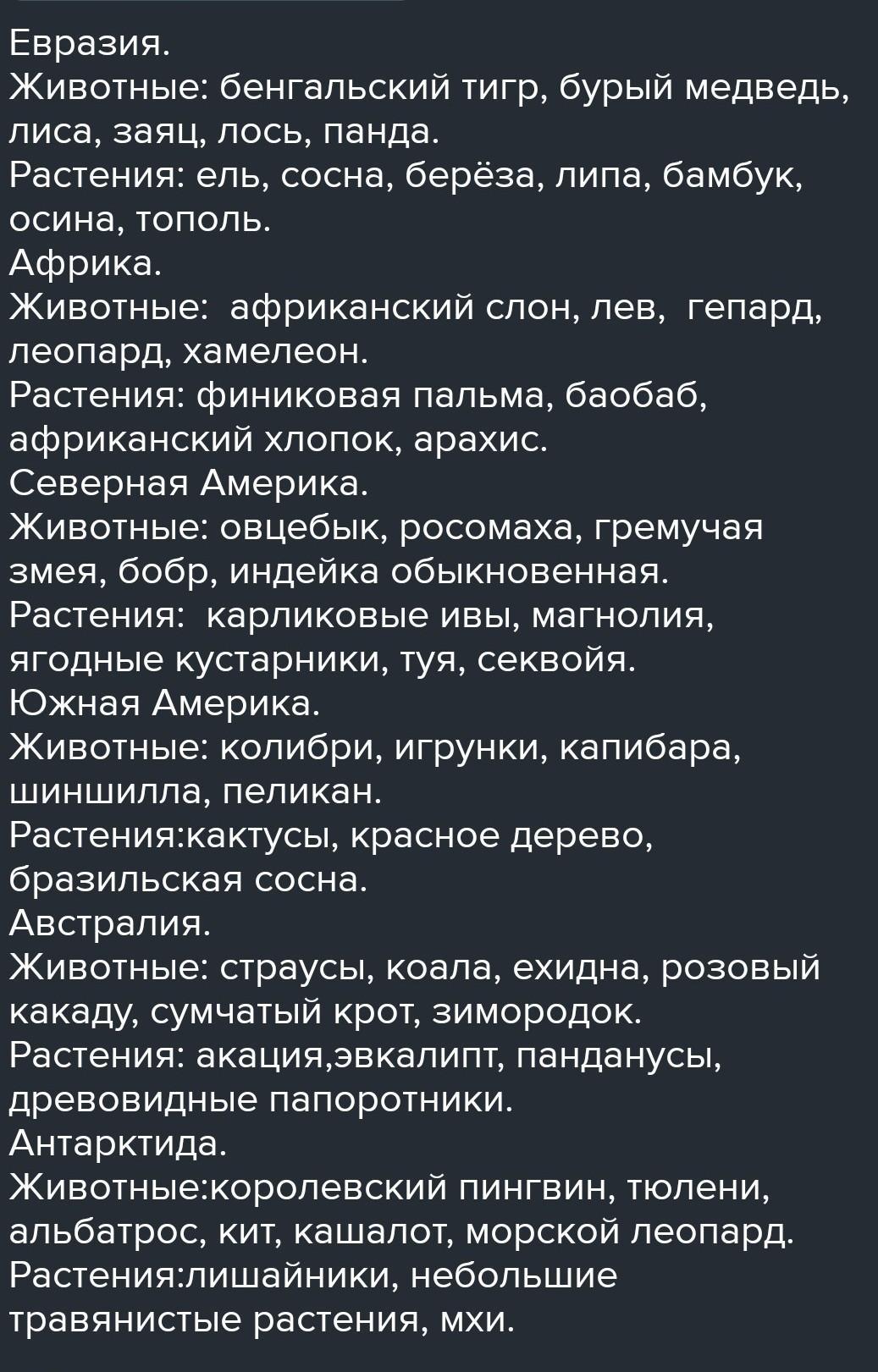 1) Название материка 2) Климат материка 3)Животный мир на материке 4) Растительный мир на материке. это всё по всем материкам
