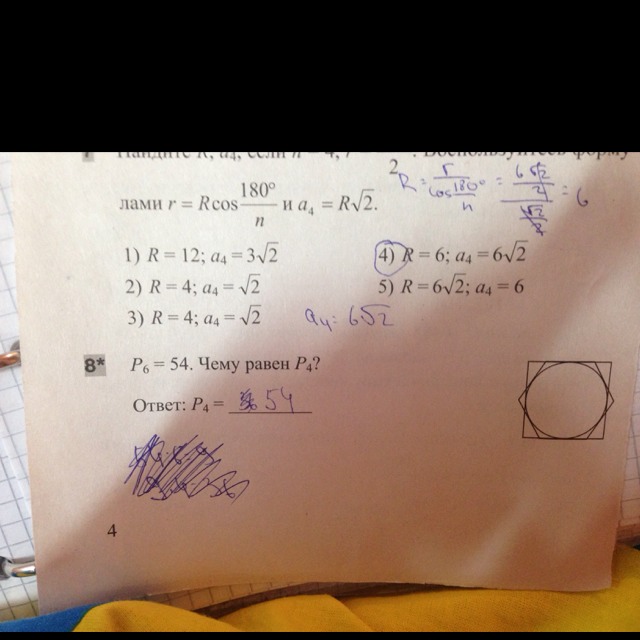 Если Р4 - это периметр квадрата, то через радиус вписанной окружности он выражается так: Р4 = 8r.