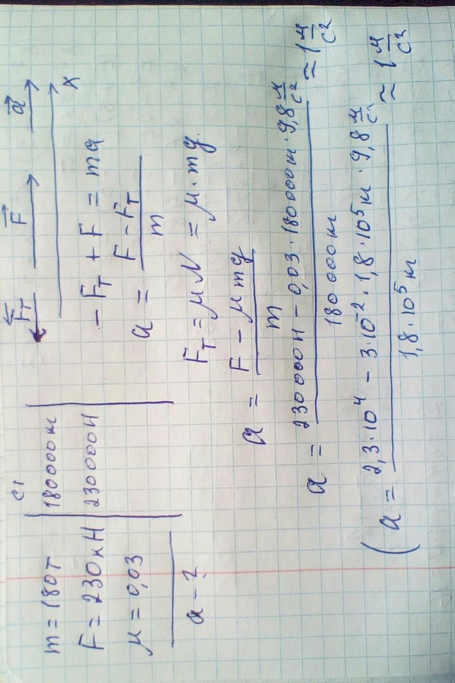 Визначте прискорення реактивного лайнера під час зльоту якщо його маса 180т сила тяги двигуна 230кН а коефіцієнт тертя коліс шасі об злітну смугу 0,03