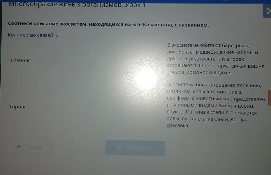 Соотнеси описание экосистем, находящихся на юге Казахстана, с названием.