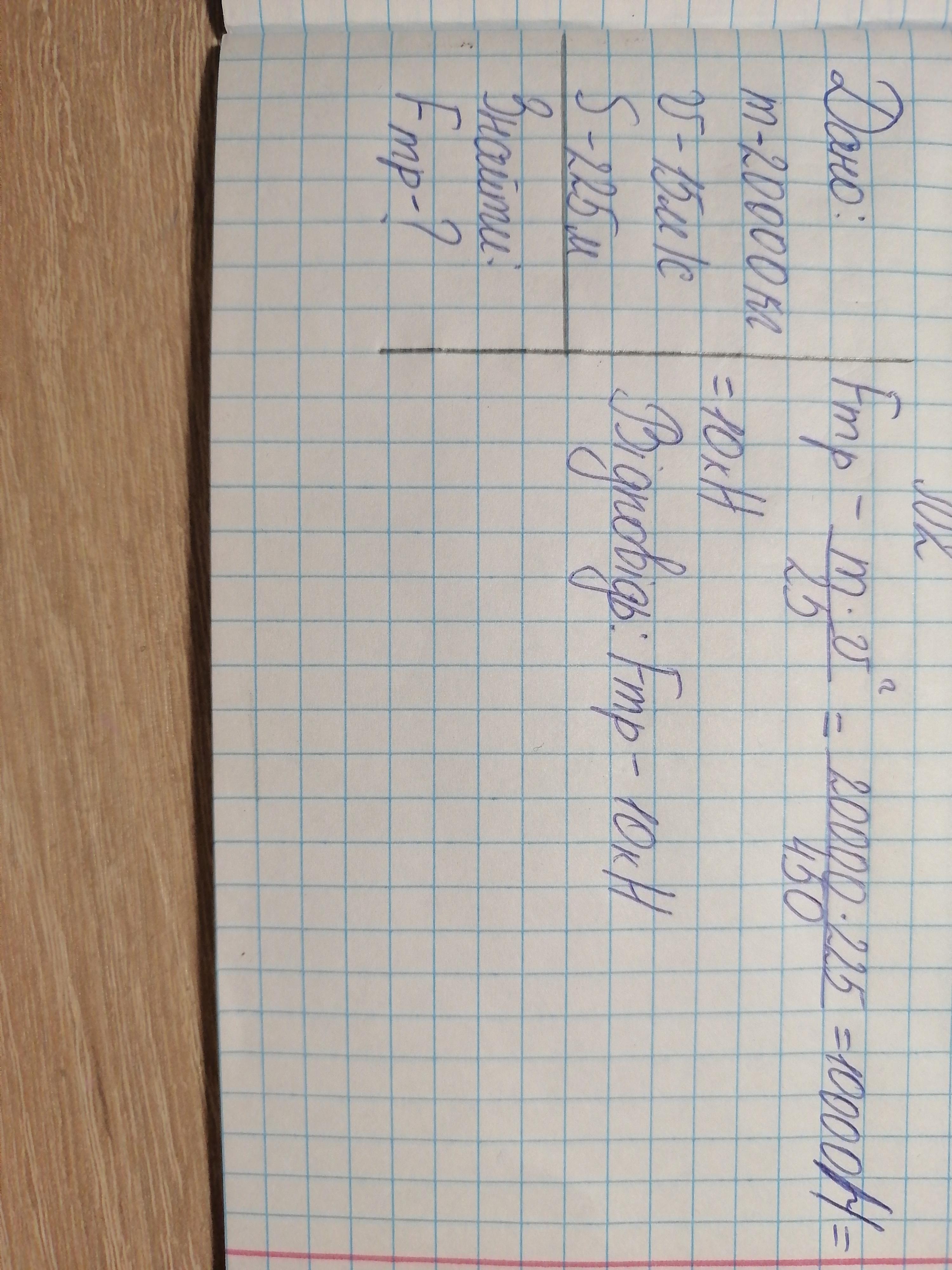 Вагон, масою 20 т рухається зі швидкістю 54 км/год. Якою повинна бути сила гальмування, щоб гальмівний шлях дорівнював 225 м?