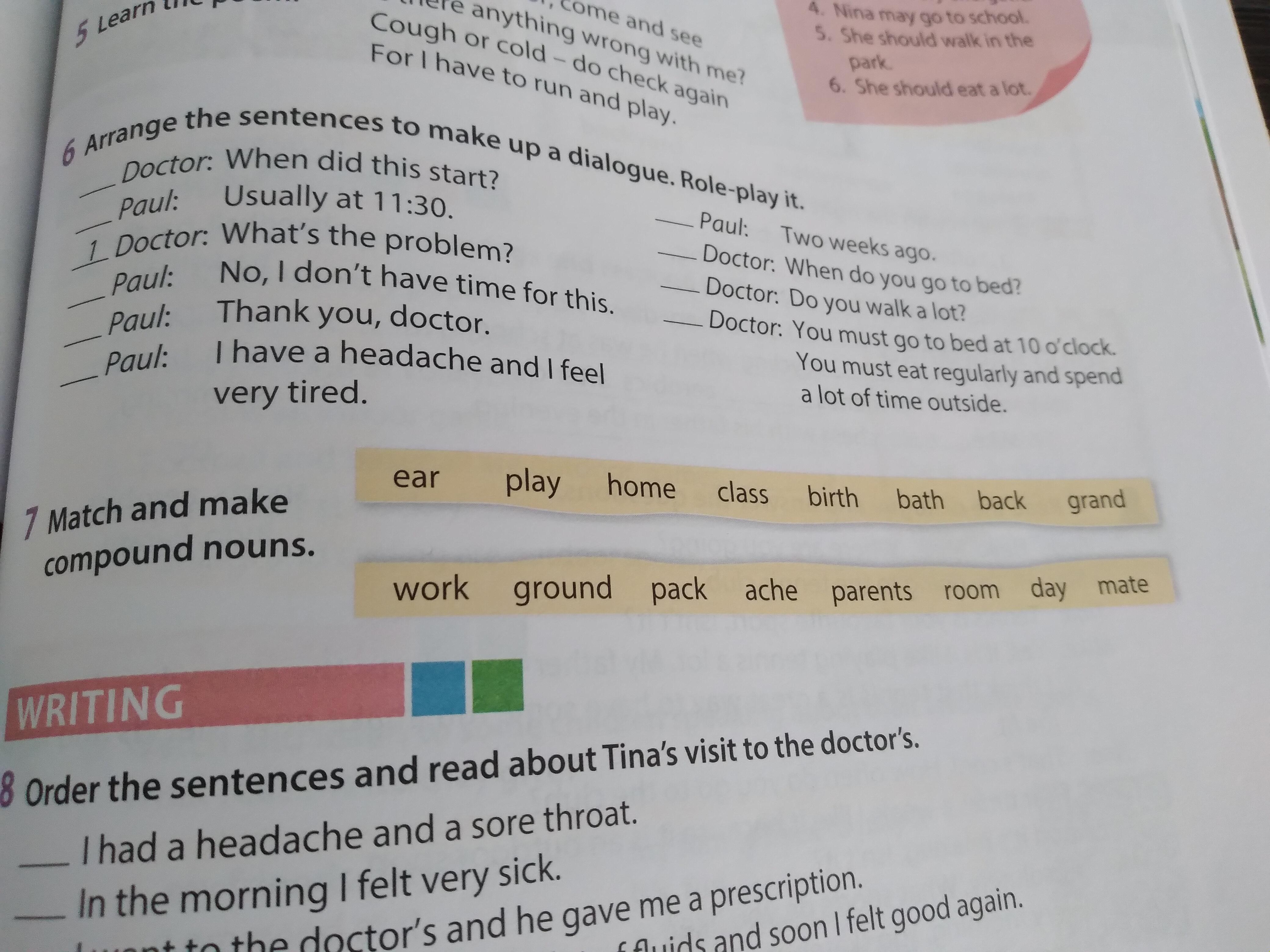 grandparents, roommate, bathroom, backache, homework, playground, classroom, birthday, earache, playroom, backpack,