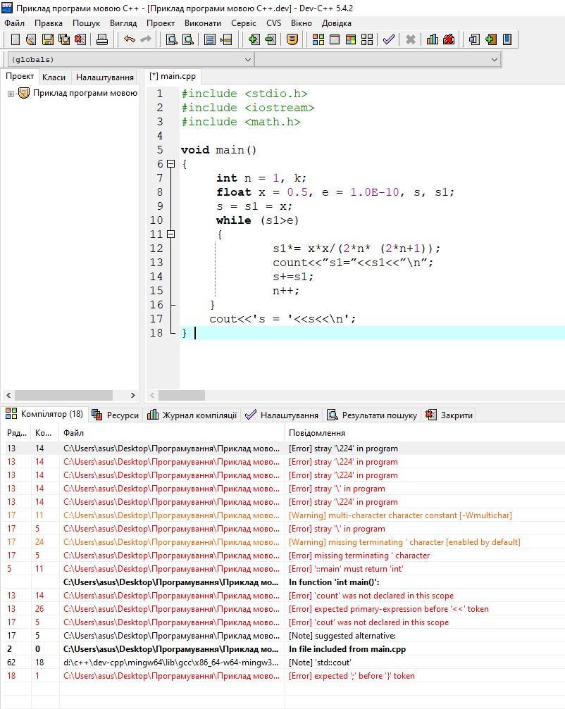 5. 17 строка: "s = " - строка - не символ; не открыты одинарные кавычки перед \n