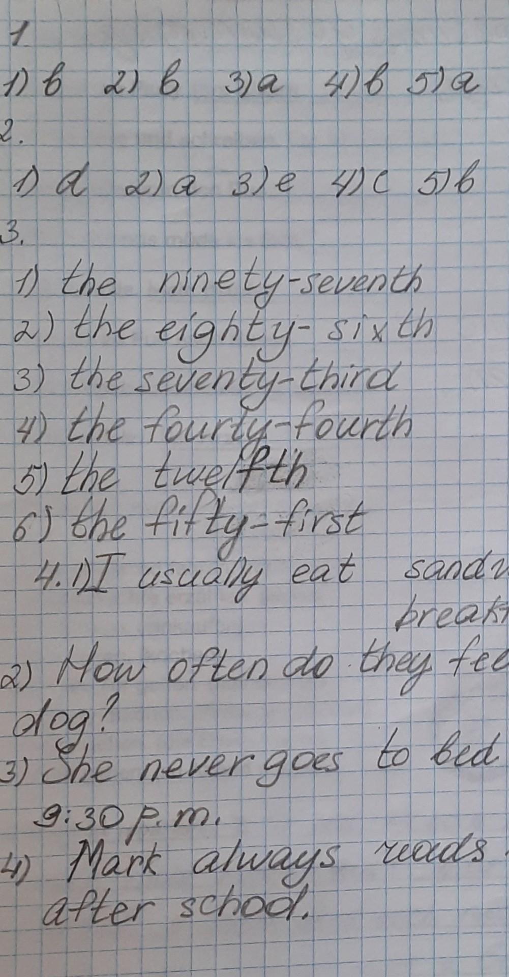 1. 1) b 2)b 3)a 4)b 5)a 6)b