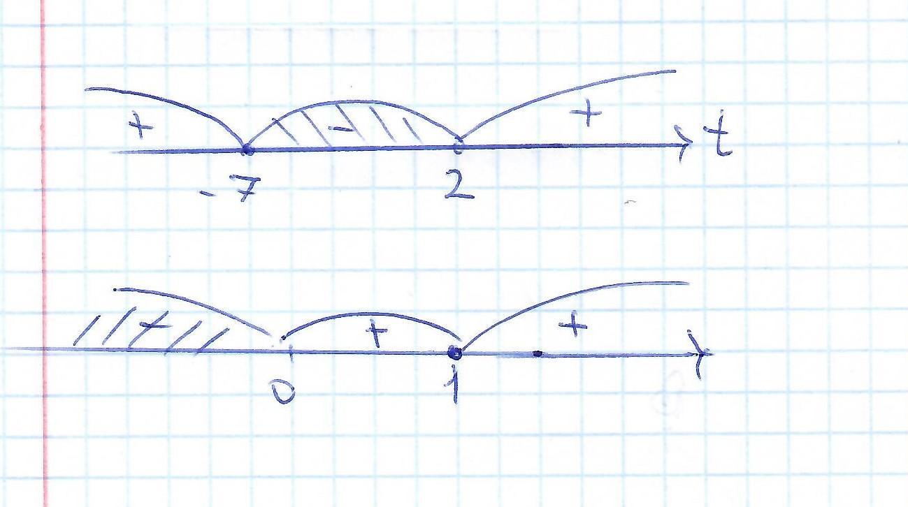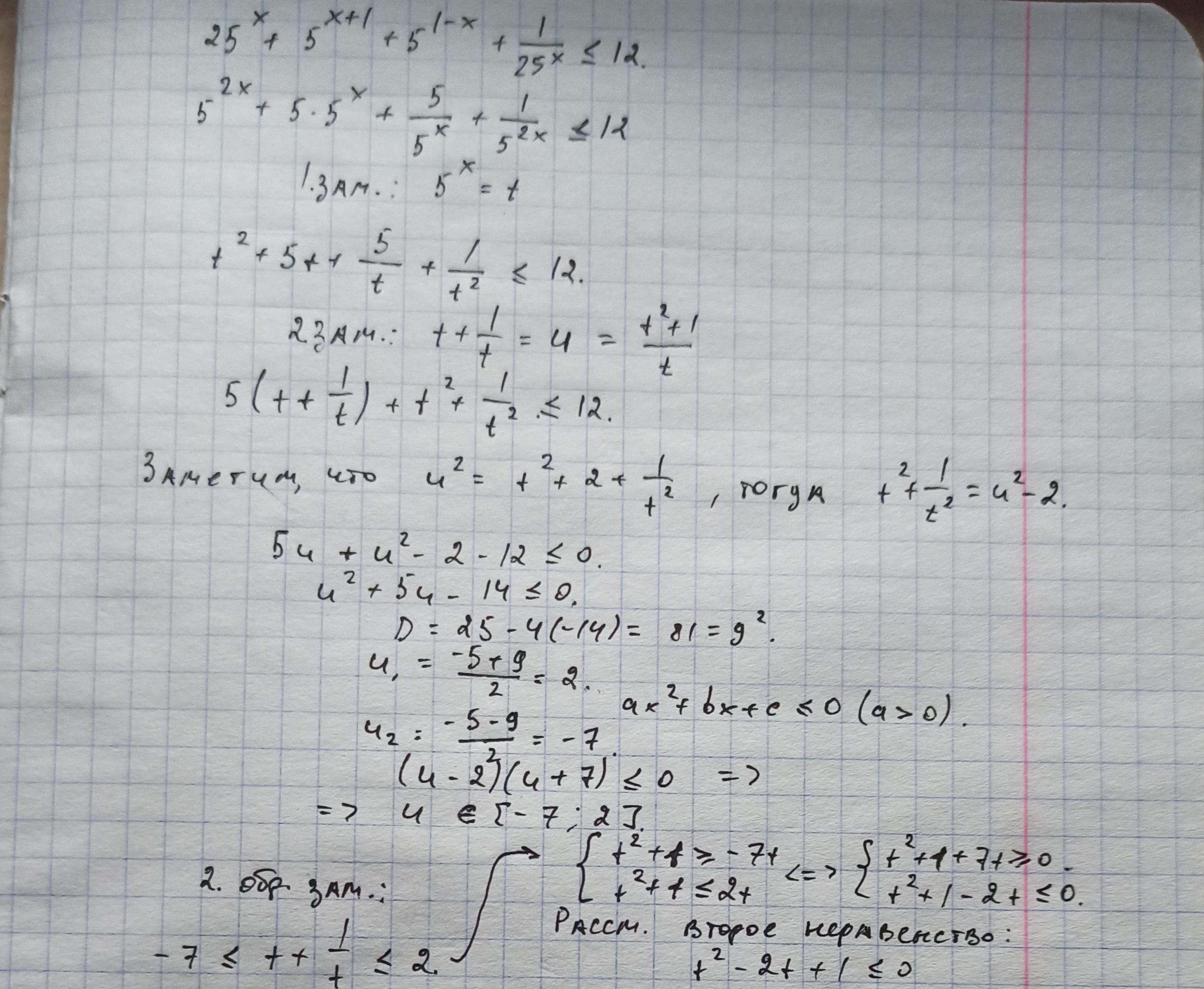 -7 ≤ t ≤ 2 , т.е -7 ≤ 5ˣ+1/5ˣ ≤ 2 ИЛИ: