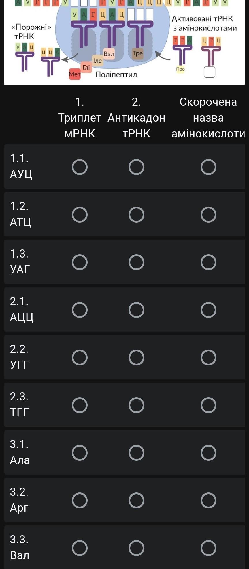Ответ:1.Триплет мРНК: 1)АУЦ