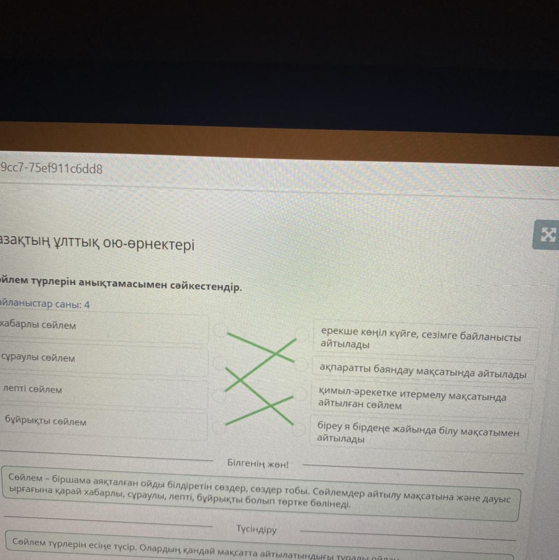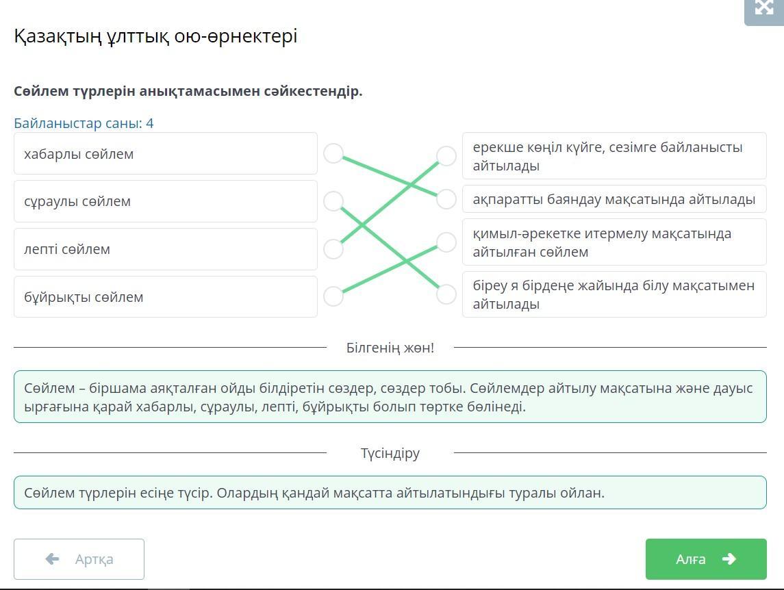 Сөйлем түрлерін анықтамасымен сәйкестендір,