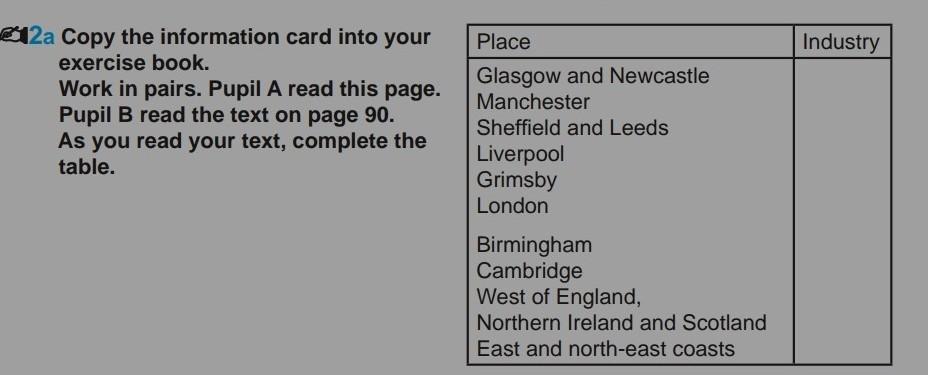 Copy the information card Into your exercise book. Work in pairs. Pupil A read this paje. Pupil B read the text on page 90
