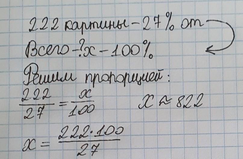 В хранилищах музея содержится 222 картин(-ы, -а), что составляет 27 % от общего фонда объектов художественного наследия. Каково общее количество картин в этом музее?