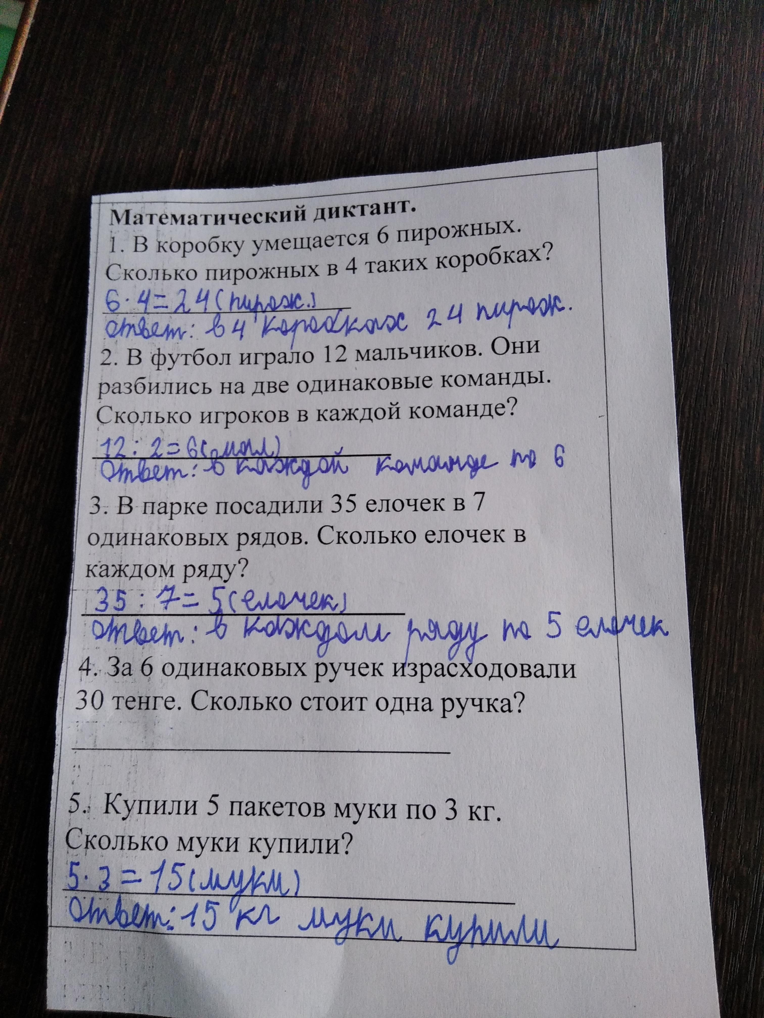 Если 6 ручек стоят 30 тенг то 30:6= 5 тенг стоит 1 ручка