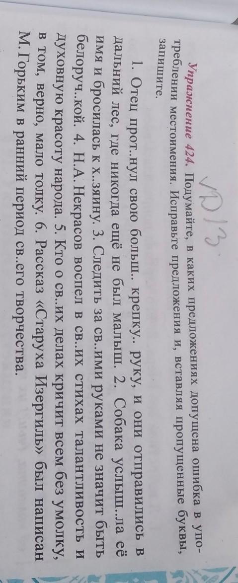 Отец протянул свою большую крепкую руку, и они отправились в дальний лес, где никогда ещё не был малыш. ИЗМЕНИТЬ. Отец протянул свою большую крепкую руку, и он с малышом отправились в дальний лес, где ещё не был малыш. 2. Собака услышала её имя и бросилась к хозяину. ИЗМЕНИТЬ. Собака услышала своё имя и бросилась к хозяину. 3. Следить за своими руками - не значит быть белоручкой. (Здесь, думаю, верно, но это не точно). 4. Н.А. Некрасов воспел в своих стихах талантливость и духовную красоту народа. Верно. 5. Кто о своих делах кричит всем без умолку, в том, верно, мало толку. Верно. 6. Рассказ "Старуха Изергиль" был написан М. Горьким в ранний период своего(ЕГО) творчества. Заменяем своего на его