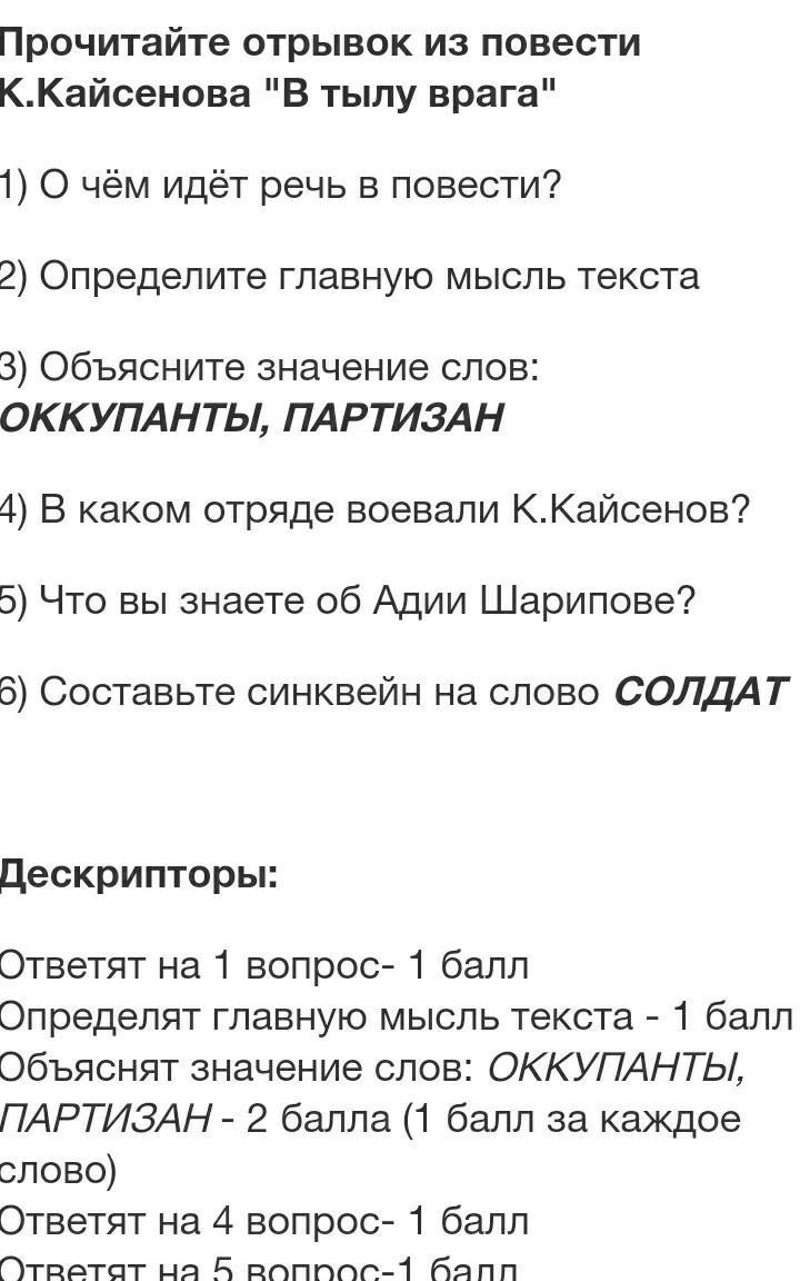 Прочитайте отрывок из повести К.Кайсенова "В тылу врага"