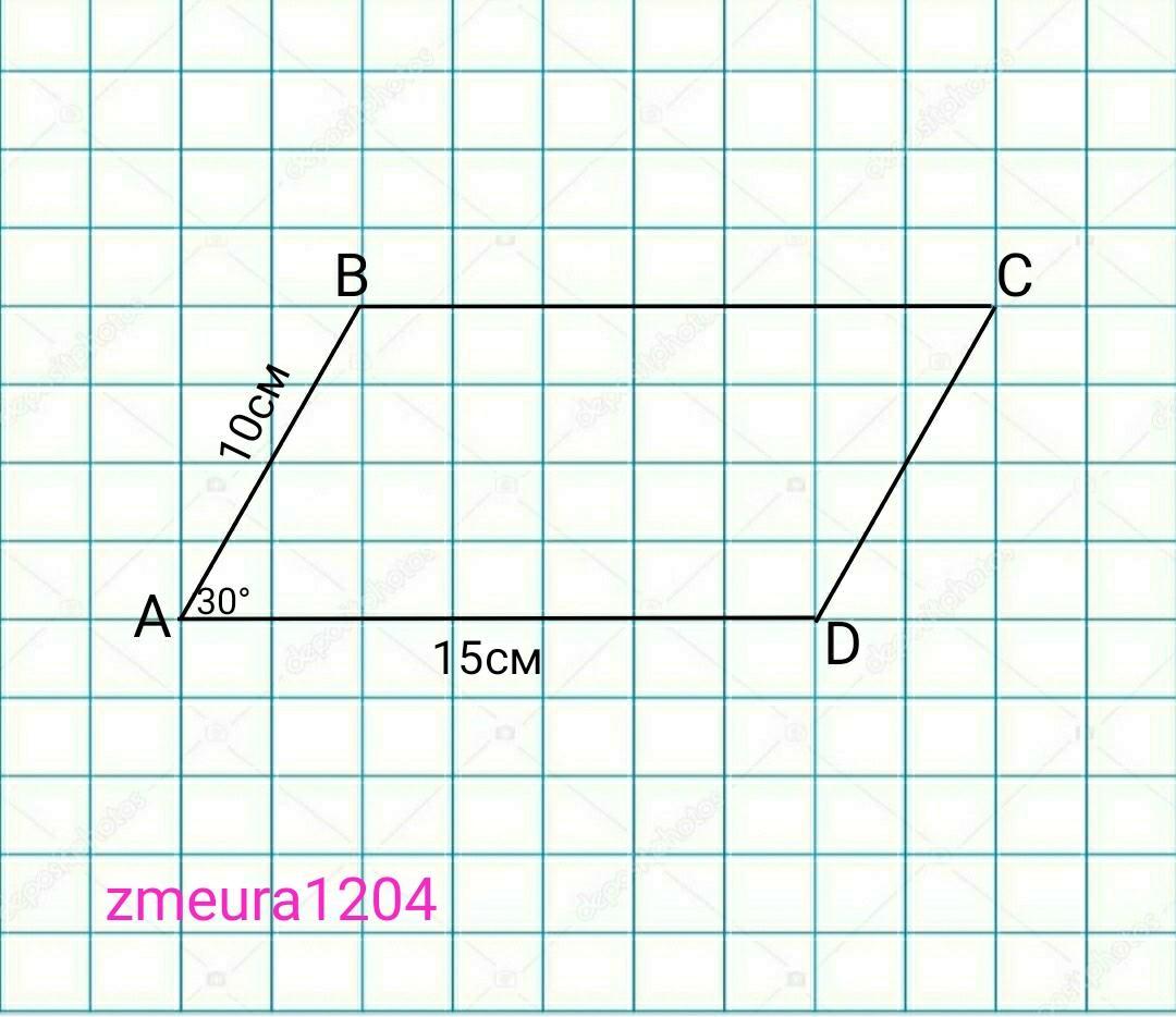 Параллелограмм со сторонами 15см и 10см имеет острый угол 30 градусов. Найдите площадь паралелограма.У прямоугольной трапеции две маленькие стороны имеют длину 2 см. Наибольший угол трапеции равен 135градусив. Найдите площадь трапеции.