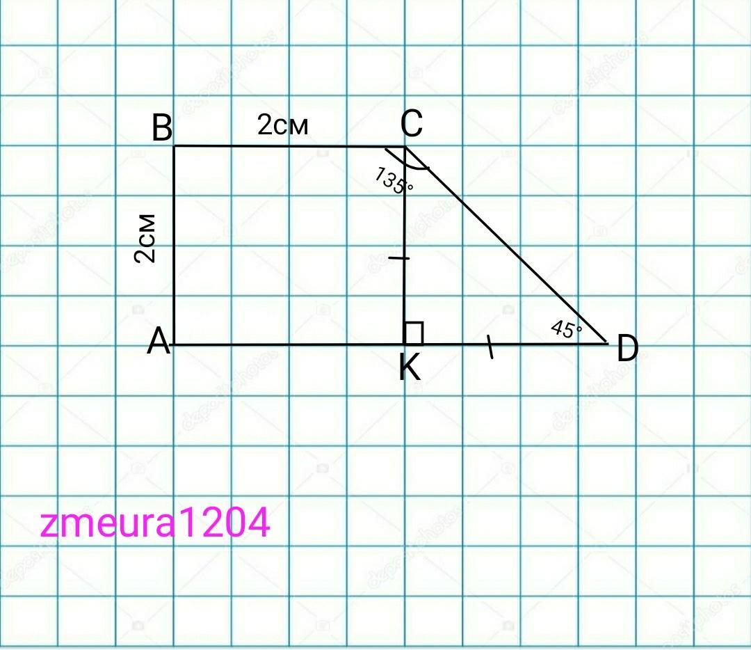 ∆CKD- прямоугольный равнобедренный треугольник (углы при основании равны. <СКD=90°; <CDK=45°; <KCD=90°-45°=45°)