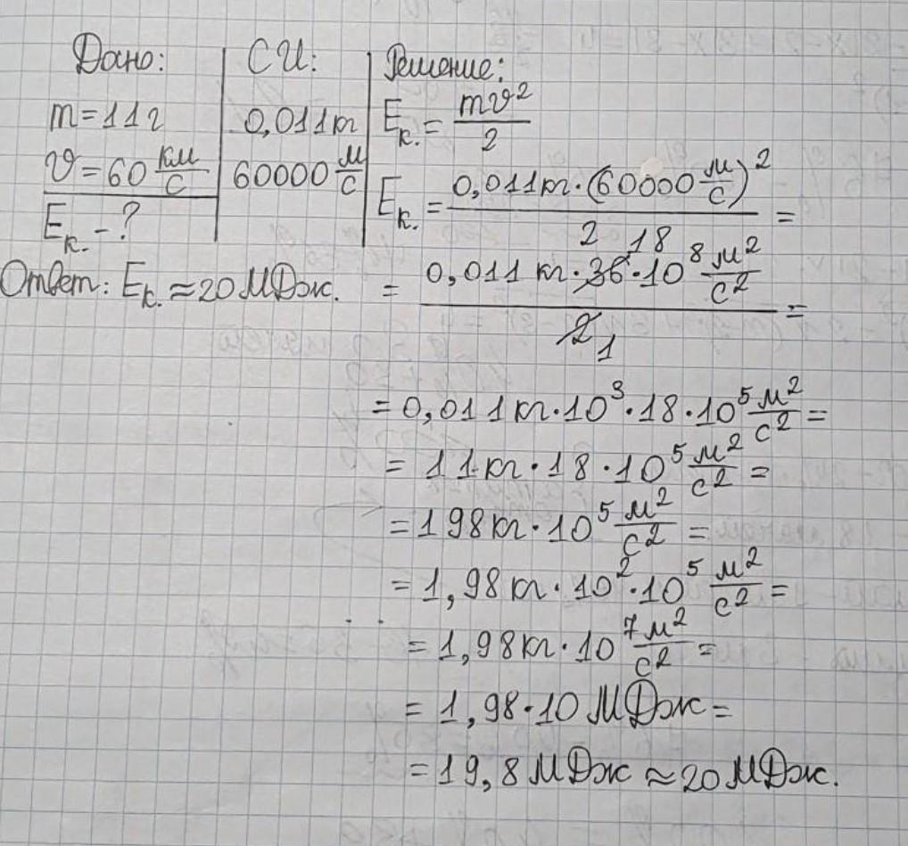 E к. ≈ 20 МДж (я ответил на 3 точно таких же предыдущих вопроса).