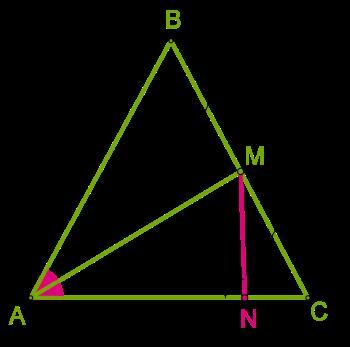 2. Расстояние от точки M до стороны AC — это перпендикуляр от этой точки к стороне, поэтому треугольник AMN является прямоугольным.