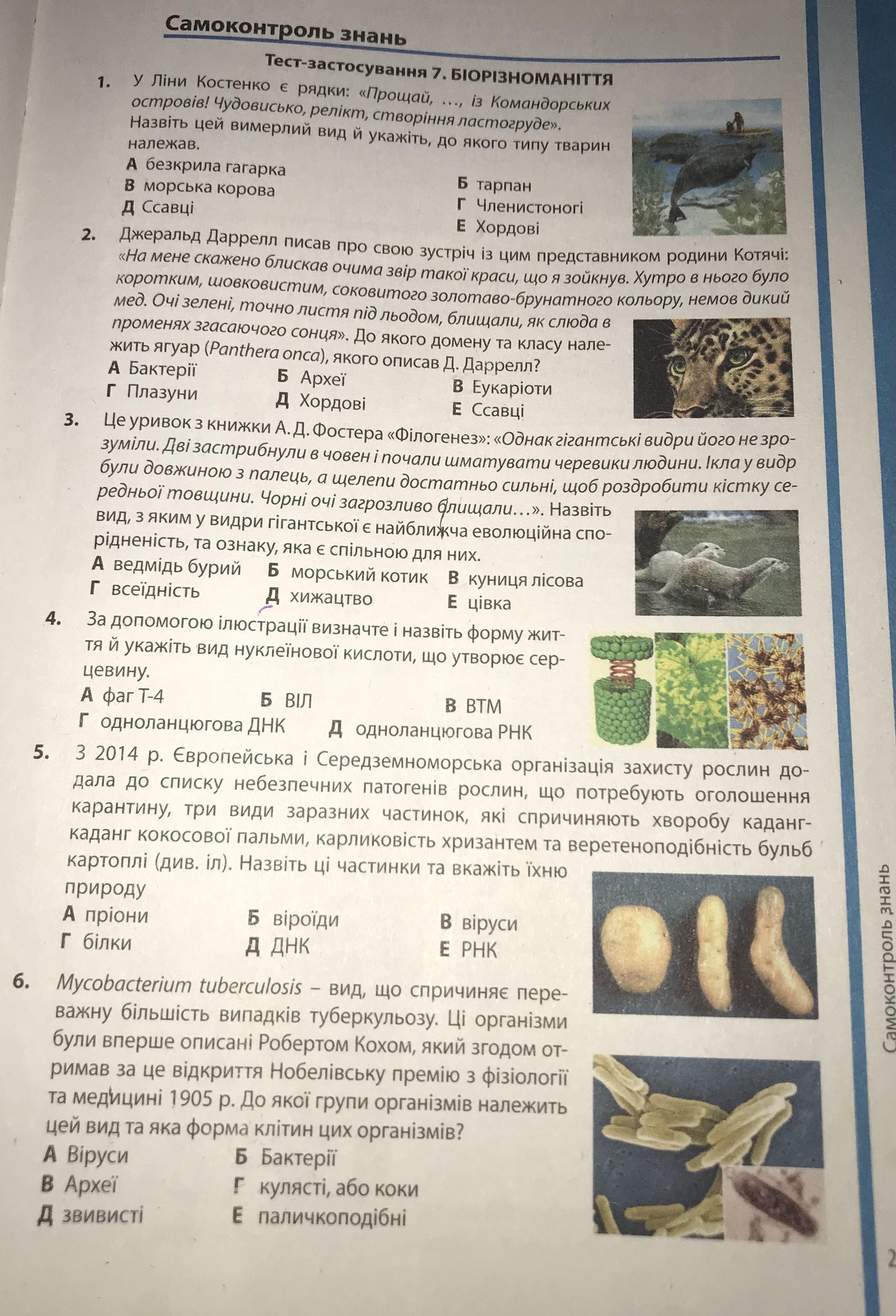 Самоконтроль знань « Біорізноманіття» до підручника «Біологія 9 клас Соболь 2017» (відповіді)