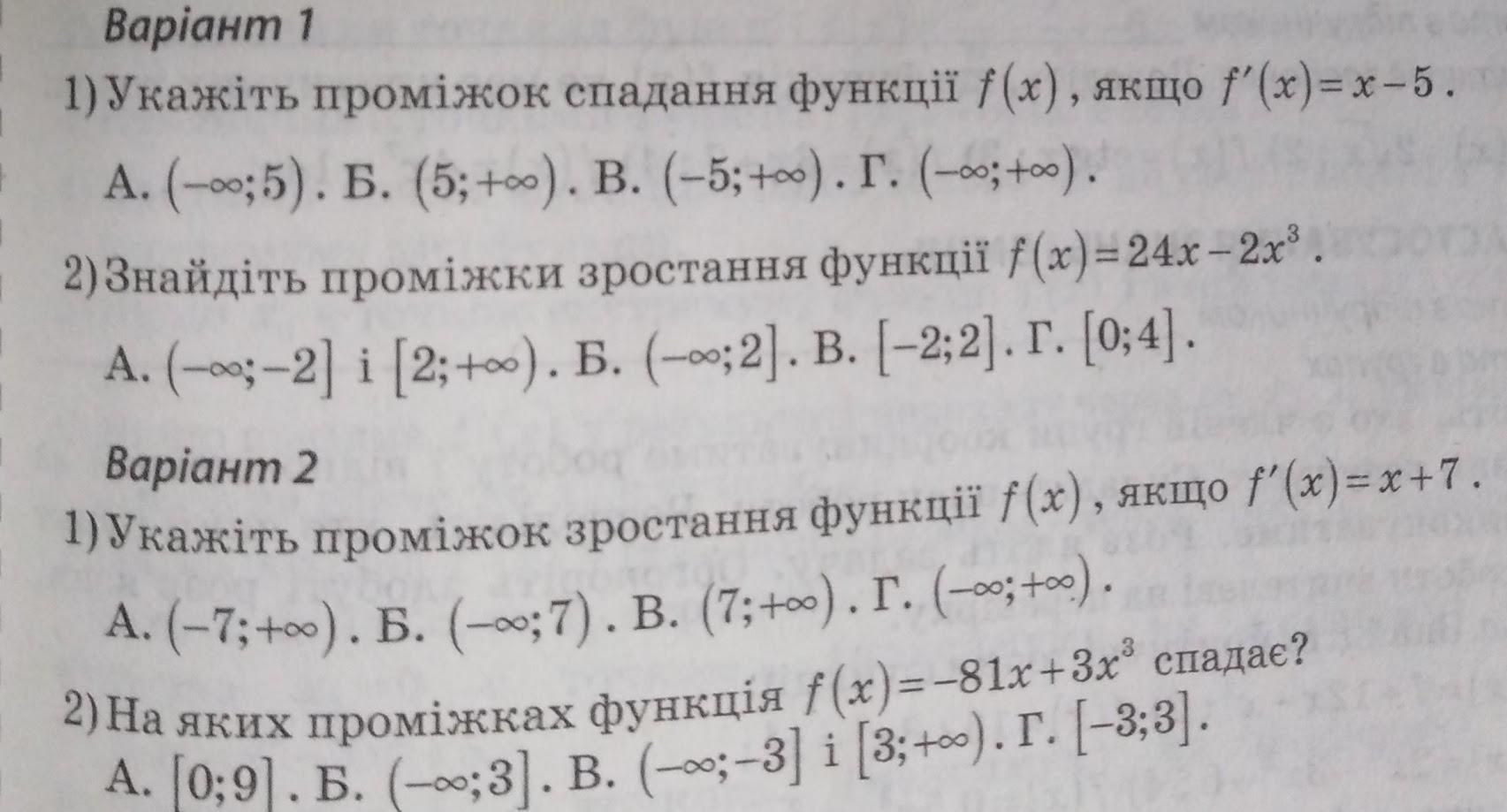 - на цьому відрізку похідна має відємні значення, тобто спадає