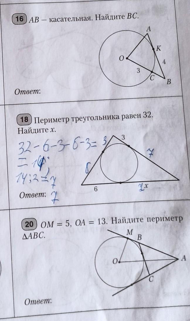 18) Обозначим точку касания с прямой BC - H, с прямой AC - K: