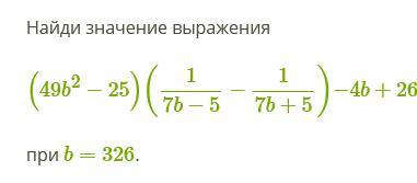 (49b²-25)(7b+5-(7b-5))/(49b²-25)-4b+26=(7b+5-(7b-5))-4b+26=10+26-4b=36-4b=36-4*326=36-1304=-1268