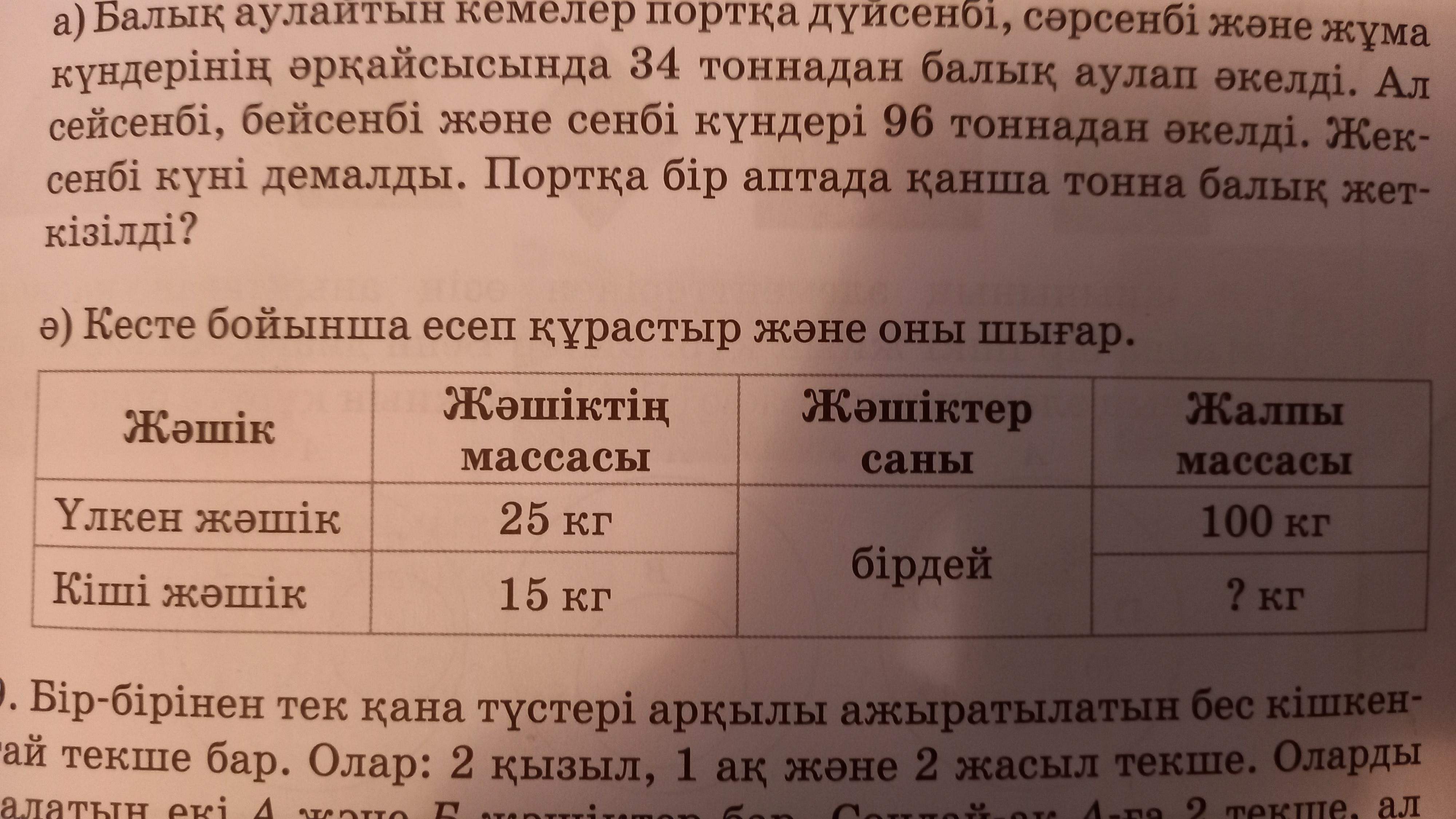 Шешуі: 100: 25 =4 (Жәшіктер саны )