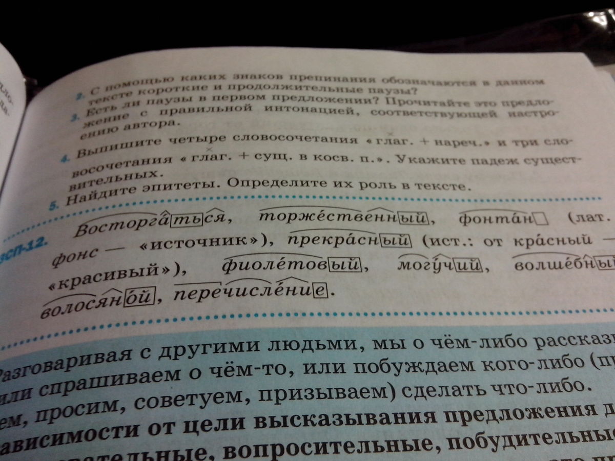 Публика восторгалась поступку храброго героя. 9 мая- это торжественный праздник для всех жителей России. В центре города стоит чудесный фонтан. Прекрасный вид из моего окна. Даша одела сегодня фиолетовое платье с бантиком. Могучий герой сражался для свой народ. Я нарисовал волшебный замок. Трава, как волосяной покров. Перечисление товаров остановилось, потому что не хватало одного