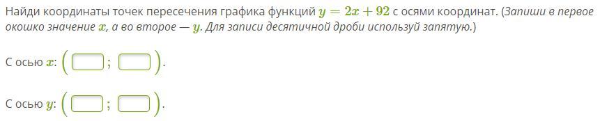 с осью оу ⇒ х=0 , у=2*0+92 , у=92 ( 0; 92).