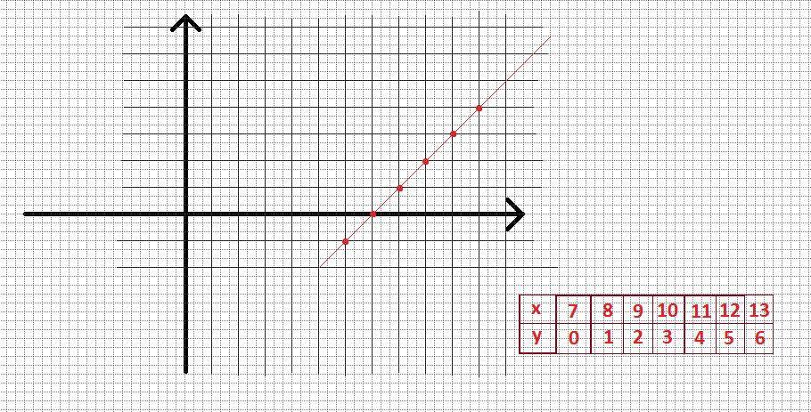 координаты точки пересечения графика функции y=x-7 с осью x: