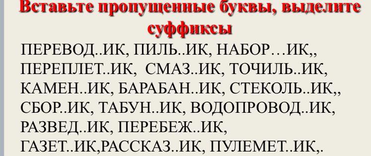 Переводчик, пильщик, наборщик, переплётчик, смазчик, точильщик, каменщик, барабанщик, стекольщик, сборщик, табунщик, водопроводчик, разведчик, перебежчик, газетчик, рассказчик, пулемётчик