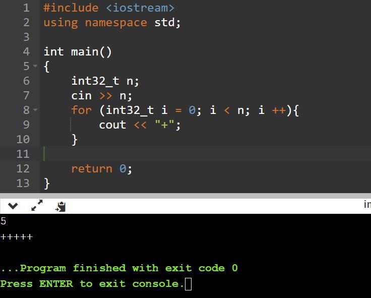 Вывести на экран в строчку последовательность знаков "+". Количество знаков вводится пользователем.