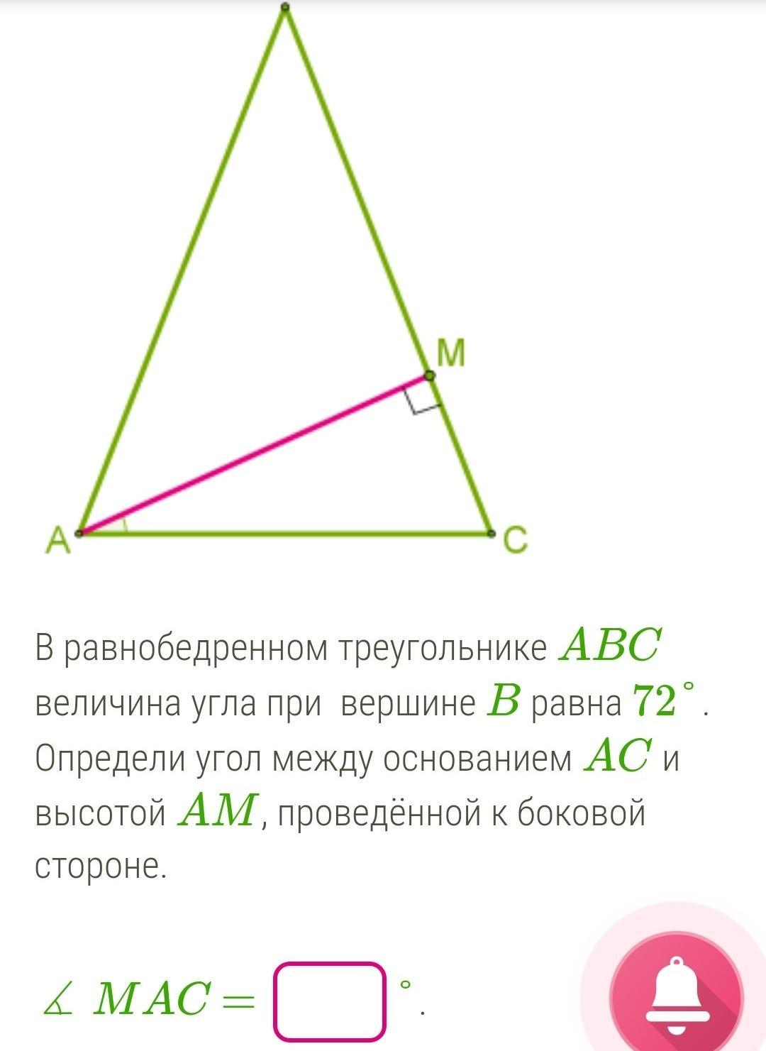Т. к. ∠М+∠А+∠С=180°, то ∠МАС=180°-∠С-∠М=180°-54°-90°=36°