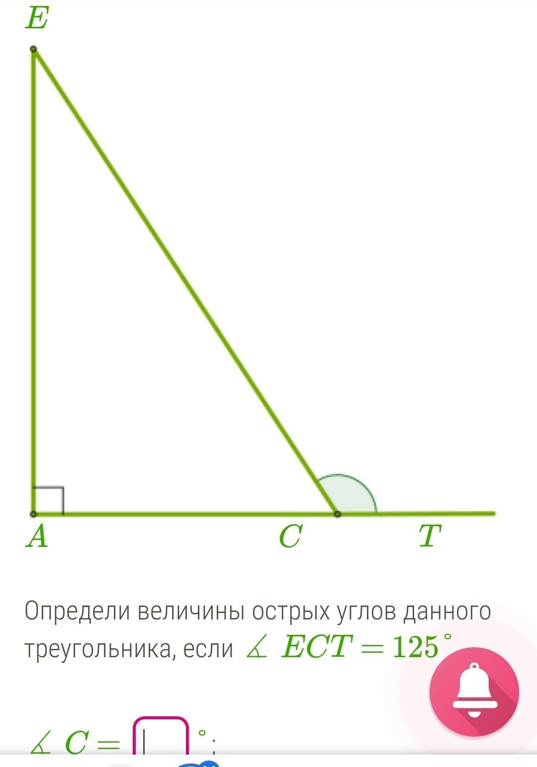 Дан прямоугольный треугольник AEC и внешний угол угла ∡ C.