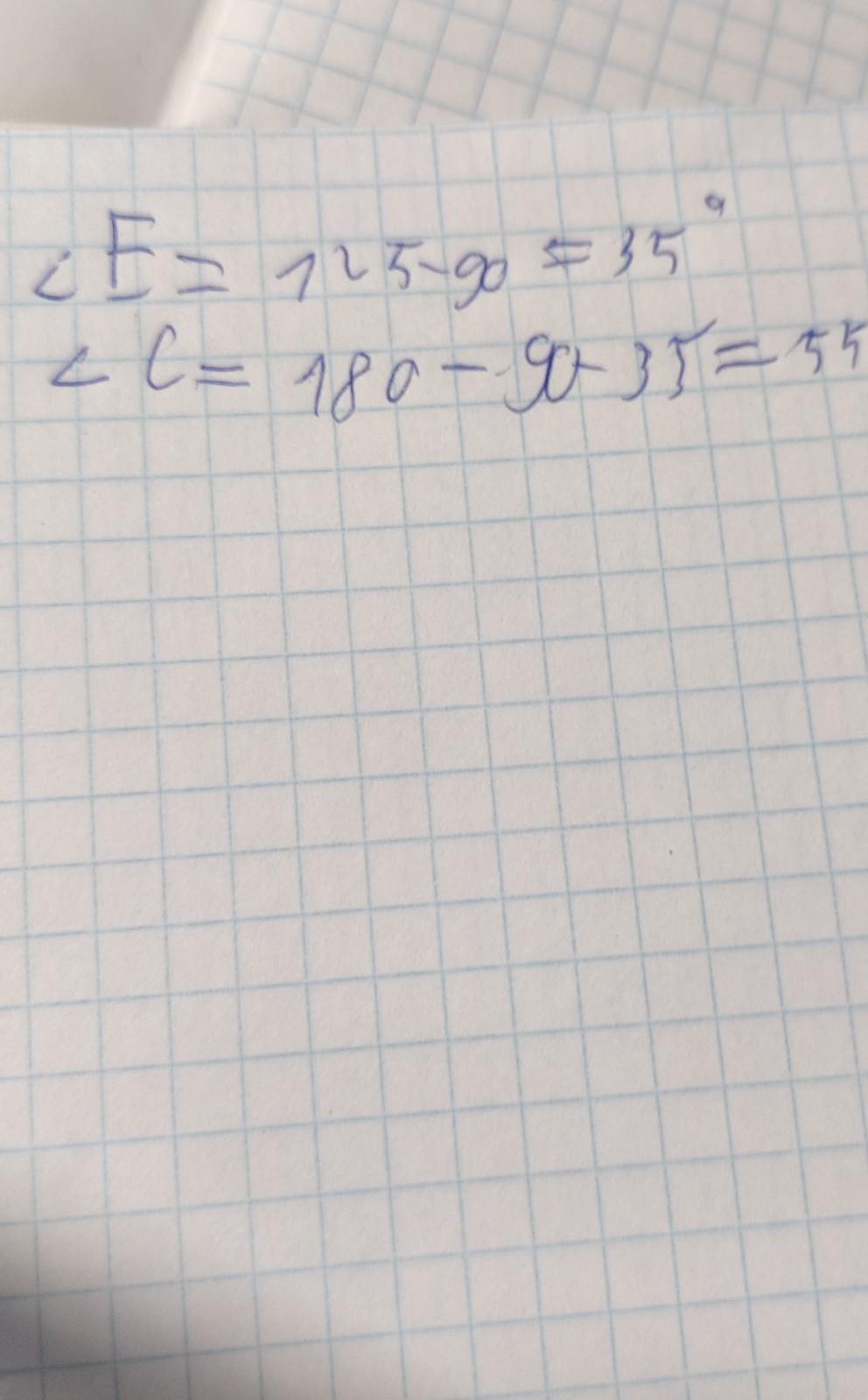 Сумма острых углов в прямоугольном треугольнике 90°. угол Е= 90-55= 35°