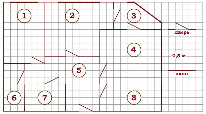 6-кладовая, 7-санузел, 8-рабочий кабинет.