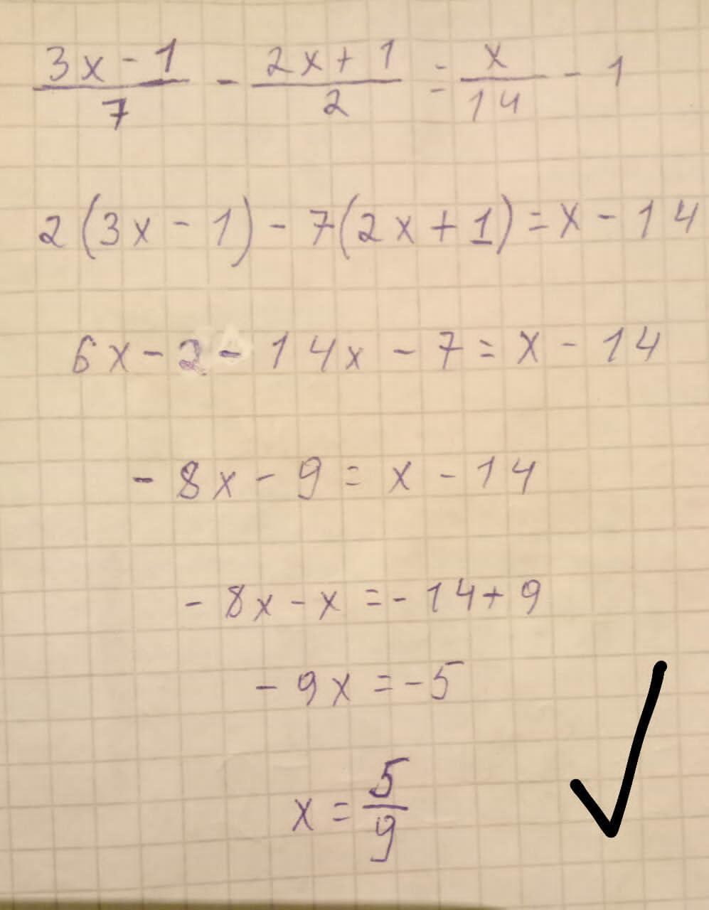 (3х-1)/7 + (2х+1)/2 = х/14 - 1
