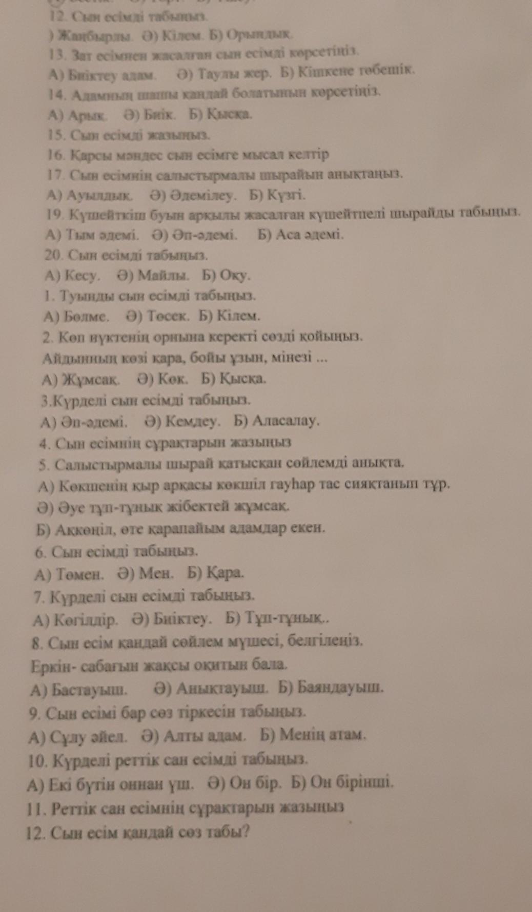 13. Зат есімнен жасалған сын есімді көрсетіңіз.