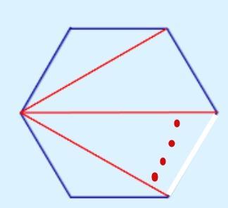 Берем один треугольник. 2 его стороны будут составлять две стороны многоугольника, К третьей стороне приклеим еще треугольник. У него уже только одна сторона будет стороной многоугольника, потому что к третьей его стороне мы приклеим еще треугольник.