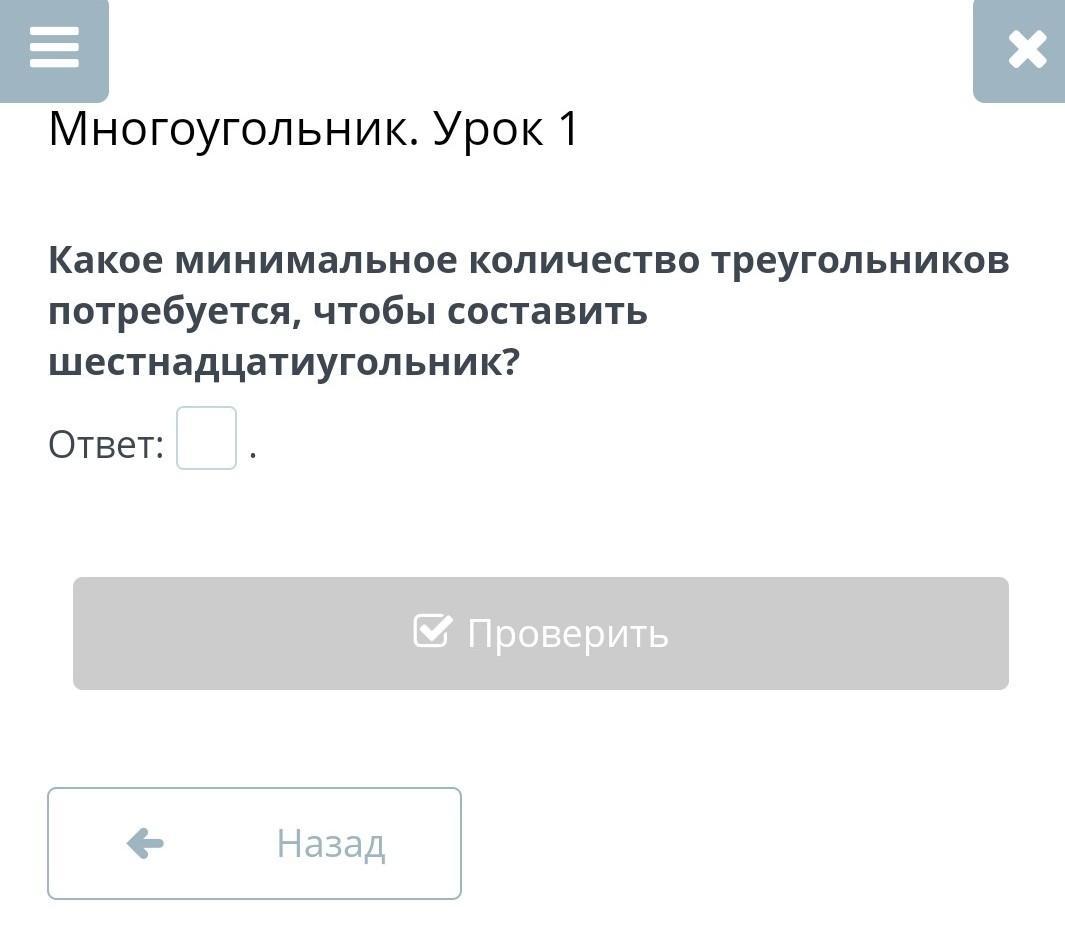 Какое минимальное количество треугольников потребуется, чтобы составить шестнадцатиугольник?Математика онлайн мектеп
