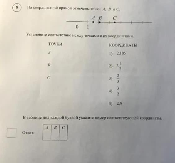 на координатной прямой отмечены точки a b c. установите соответствие между точками и их координатами