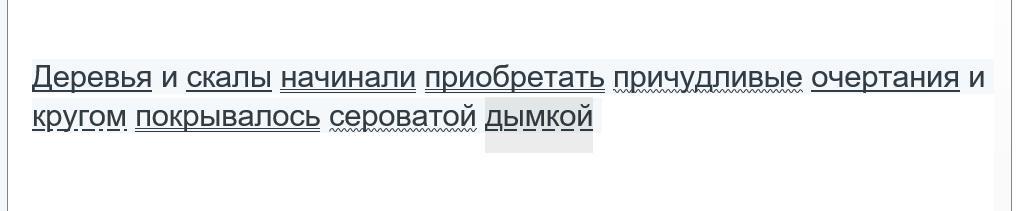 сделать синтаксический разбор:Деревья и скалы начинали приобретать причудливые очертания и всё кругом покрывалось сероватой дымкой