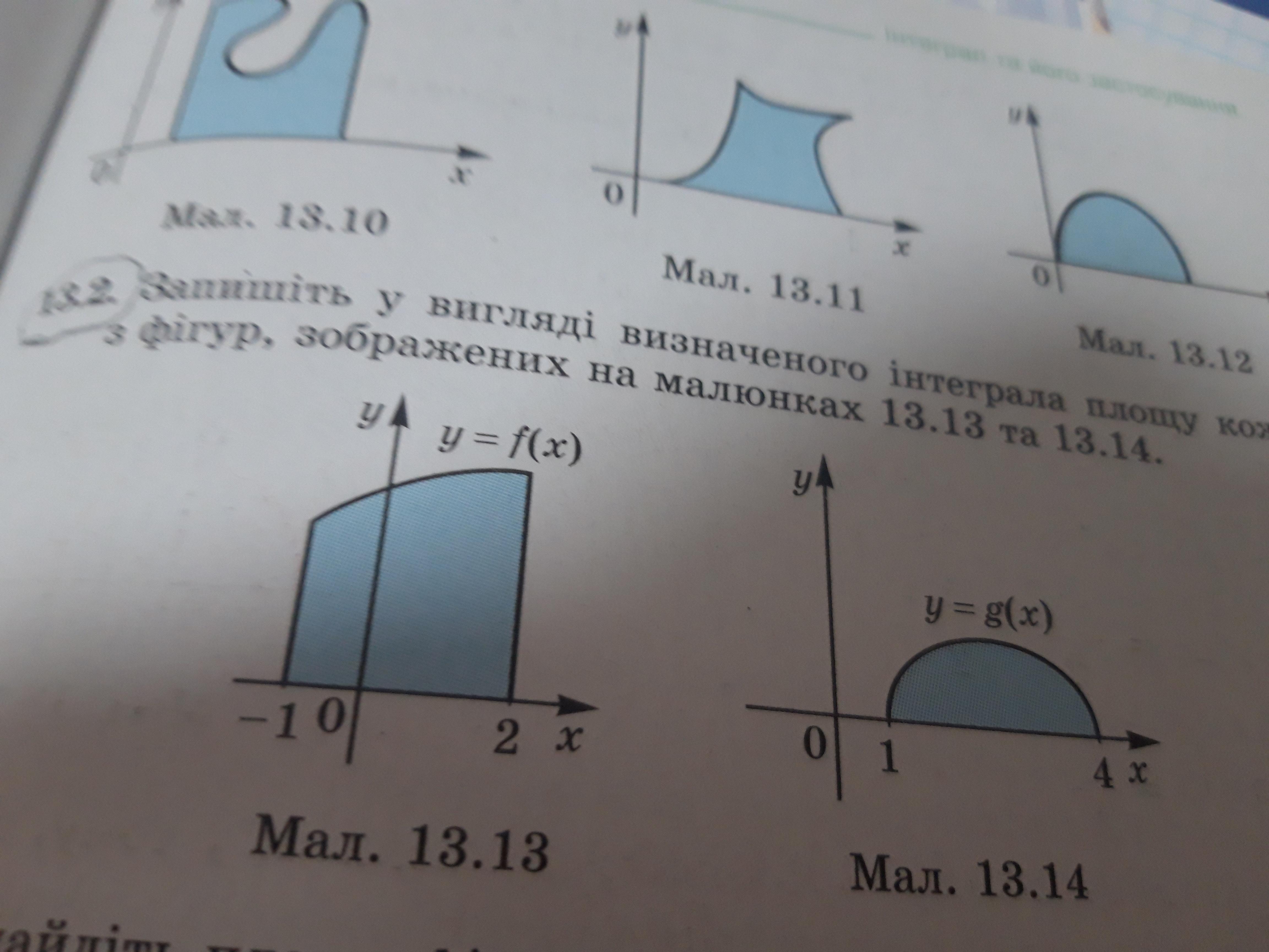 Запишіть у вигляді визначного інтеграла площу кожної з фігур, зображених на малюнках 13.13 та 13.14
