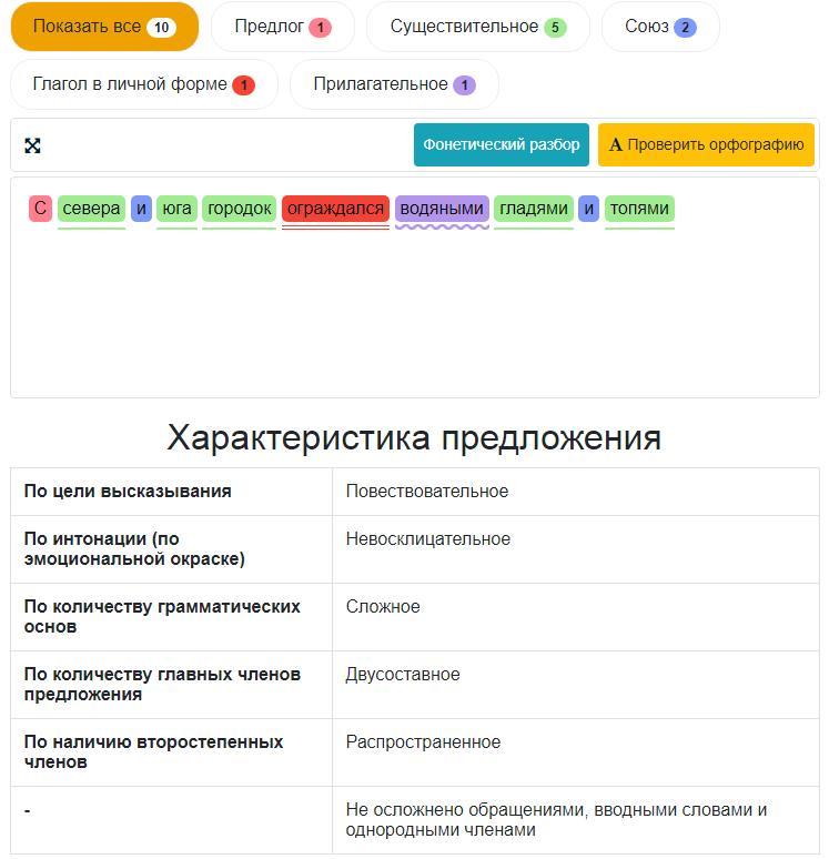 С севера и юга городок ограждался водяными гладями и топями. Синтаксический разбор пожалуйстааа