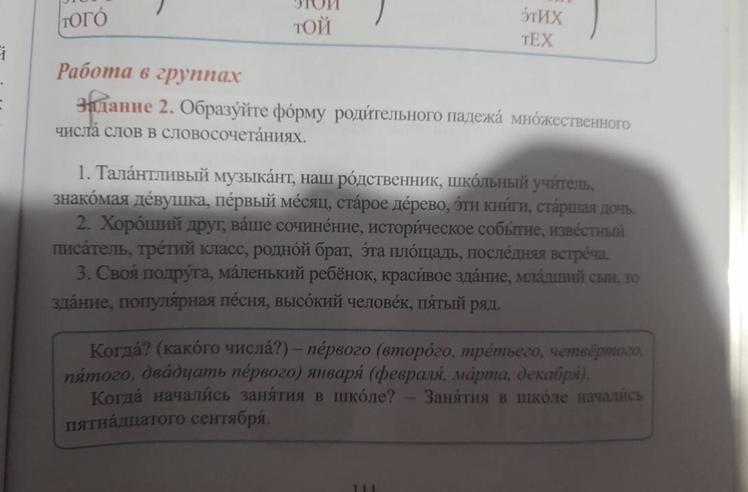 1. Талантливых музыкантов, наших родственников, школьных учителей, знакомых девушек, первых месяцев, старых деревьев, этих книг, старших дочерей.