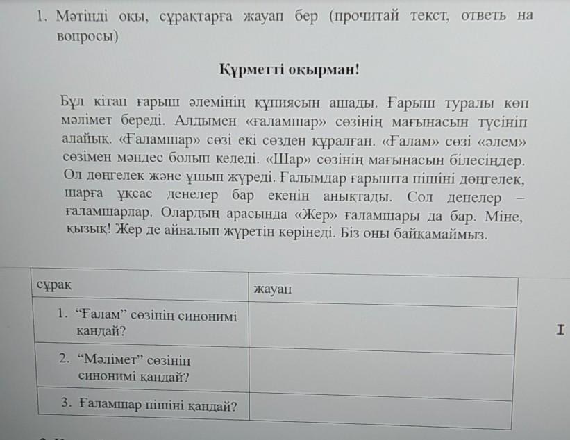 1. Мәтінді оқы, сұрақтарға жауап бер (прочитай текст, Ответь на