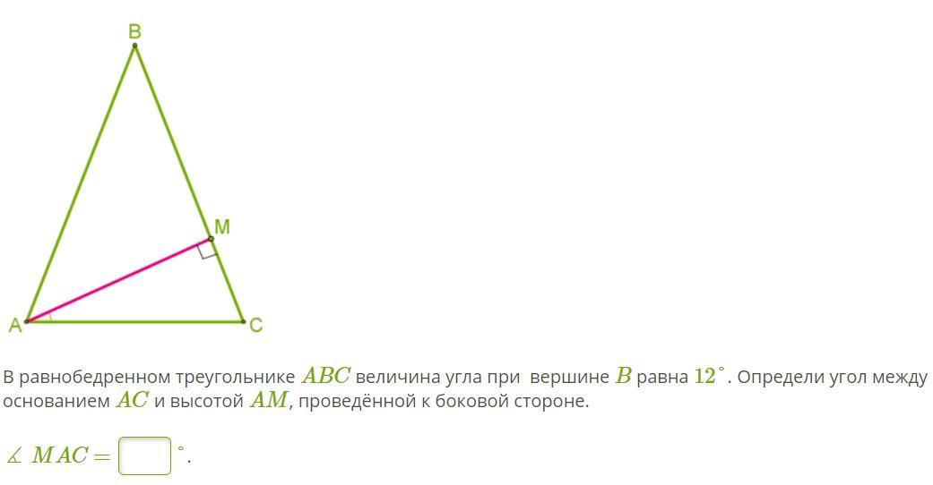 ∠А = ∠С = (180 - 12) : 2 = 168 : 2 = 84°.