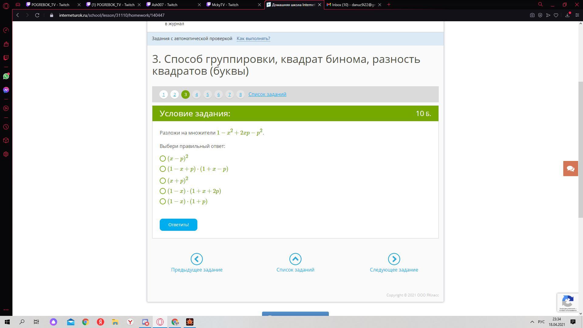 1-х²+2рх-р²=1-(х²-2рх+р²)=1-(х-р)²=(1-х+р)(1+х-р)