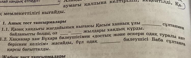 1.2 Хақназар хан Бұқара билеушісімен << достық және әскери одақ туралы ант беріскен келісім >> жасайды, бұл одақ Ташкентің билеушісі Баба сұлтанға қарсы бағытталды.